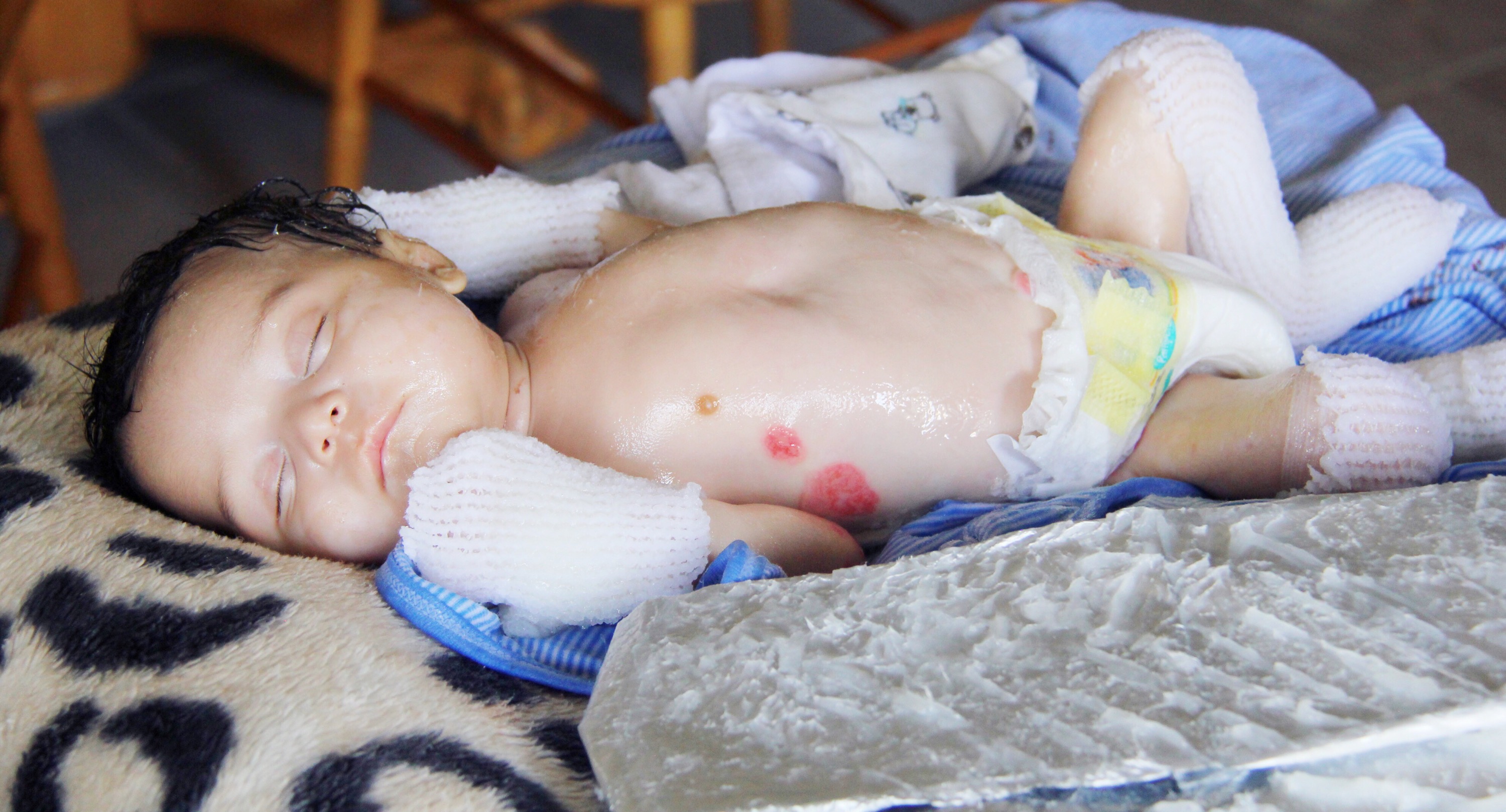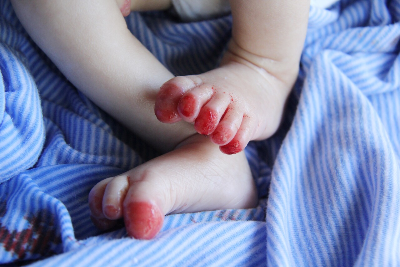 Although all of the strict precautions we follow seem to have slowed down the process of blisters forming on Ethan’s skin, only a few blisters show a significant improvement. The blisters that he was born with on his buttocks increased in size and are still raw. Blisters that were showing improvement, have started to bleed again. It concerns me that the rate of blisters healing is slower than the rate of blisters forming. Just last night we had to pop a blister on the side of his knee before it became any larger. Ethan constantly maintains a light fever between 99°F and 100.2°F because his immune system is constantly working to fight infection. His body uses a lot of energy trying to heal so we need to give him Multi-vitamins and higher calorie formula. He struggles to gain weight because it is painful for him to eat. He bleeds from blisters that have formed on his gums. His hunger is usually superseded by exhaustion, even with breaks, while he feeds. His breathing complications start almost immediately after starting to feed. His chest expands forcefully and rapidly for his lungs to receive oxygen. He usually tires out with less than an ounce of formula and then we squeeze formula into his mouth for him to swallow. Lately he doesn’t cry much because it causes him to cough uncontrollably. He only cries when his pain is too much to handle. He only sleeps for short periods of time because thick phlegm builds up in his throat and he wakes up choking on them. Occasionally it is a mixture of phlegm and blood that we suction out of the back of his mouth. We are not sure the extent of the depreciation of his internal health but there are signs that the EB has spread to his digestive track. He gets extremely agitated even when just passing gas. He throws his head back and turns his head from side to side fanatically, kicking and throwing his hands all about. We will be exploring other options for treating his disease Hertlitz Junctional Epidermolysis Bullosa (H-JEB). Despite our best efforts to maintain his condition, his disease shows to be life threatening. Our new objective is to not only maintain his condition as best as possible but also raise enough money to allow Ethan to under go a bone marrow transplant that will give him a chance at life. As Ethan’s parents we do not have the financial ability to bless Ethan with this life saving operation. We can only hope that with the joined financial support of our community, we will be able to expand both Ethan’s Life and his lively hood.