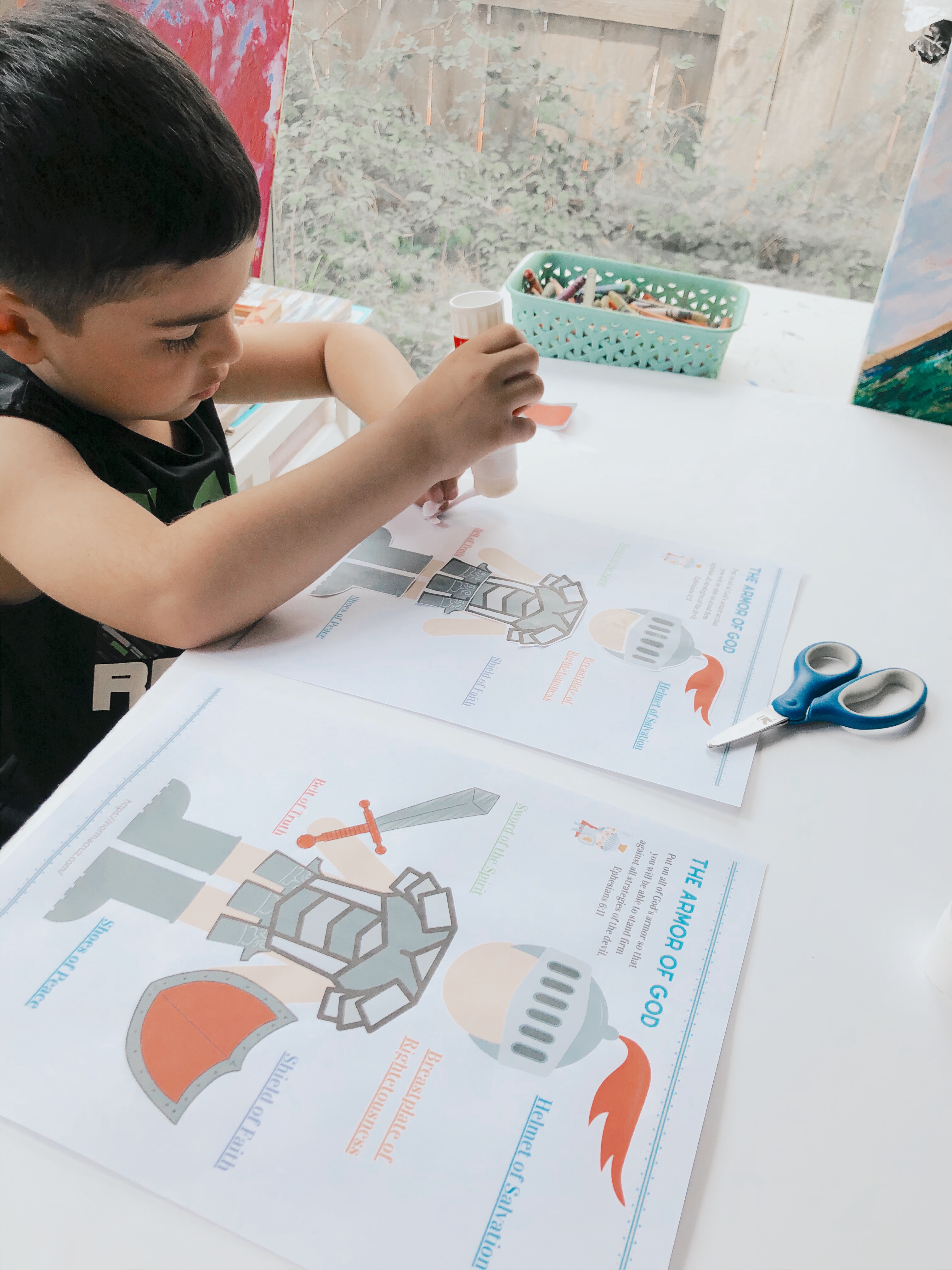 We pray and speak out the truths of our spiritual armor in the mornings and we physically motion that we are putting the full armor on. Helping them memorize and know the real meaning behind each symbolic piece of armor is so powerful, you can expect a turn around in any spiritual battles you may be facing.
