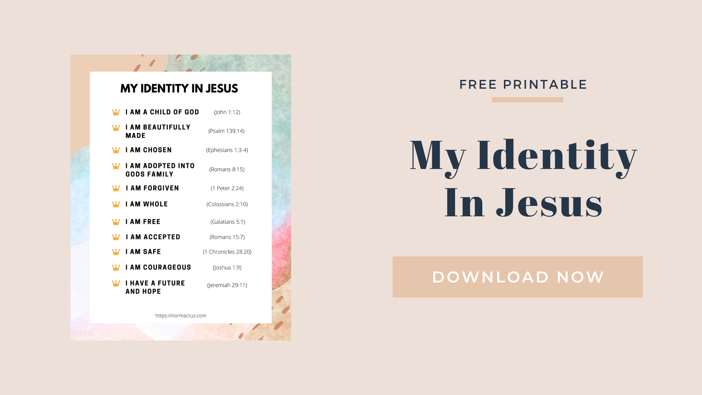 One thought on “My Identity In Jesus FREE PRINTABLE”