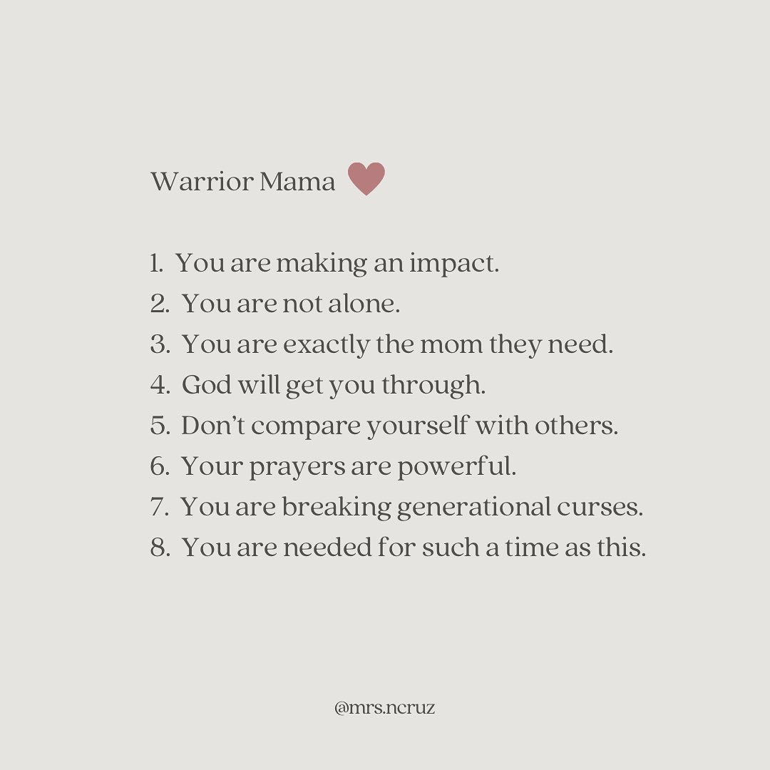 Creating an atmosphere in my home of security and safety is important to me. Modeling relationship and not religion. Sometimes it’s the little things we do that makes a huge impact in the lives of our children. As mothers we need to be careful not to carry the weight of being a perfectionist and comparing ourselves to others. Social media can make us feel like we need to do better, work harder to have a perfect life and be the perfect mom. We all fall short and need God’s help, but you are the chosen vessel of God to bring life and sustain it. God created us all different and unique. You carry exactly what your children need for such a time as this. I want to remind you today that our children grow and seasons change but God always remains the same. Warrior mama, no one is perfect. Be confident in who God says you are! He hears your prayers and you are making an impact in your child’s life.
